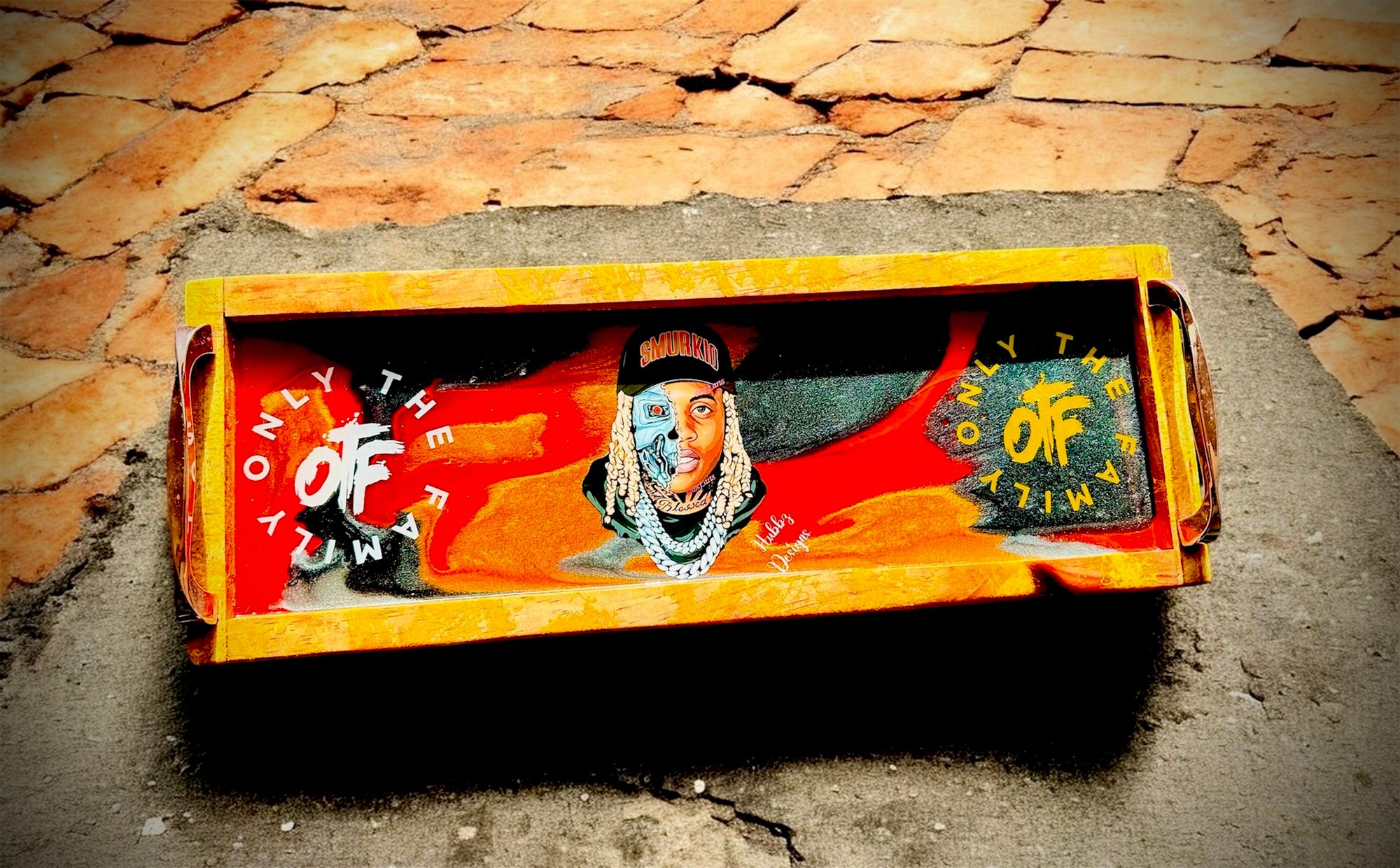 Whether you're a die-hard fan or just appreciate unique art, this Lil Durk art tray is the perfect way to show your love for the artist and his crew. Get yours today and elevate your space with a touch of OTF style!"